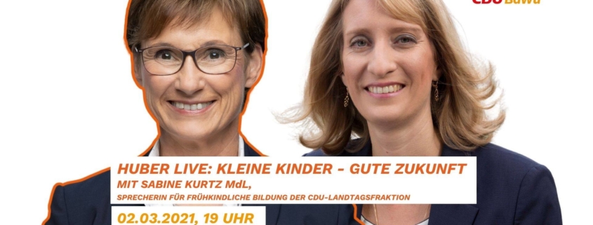 Mit Sabine Kurtz, MdL, Vizepräsidentin des Landtags von Baden-Württemberg, Sprecherin für frühkindliche Bildung und Kirchenpolitik spricht Isabell Huber MdL am 2. März 2021 ab 19 Uhr in einem Facebook-Live über die Zukunft unserer Kinder. Eine gute Qualität in der Kinderbetreuung zeichnet sich aus durch sprachliche und individuelle Förderung bei konsequenter Orientierung an den Bedürfnissen der Kinder, Wertevermittlung und der Gewährleistung eines guten Übergangs zur Schule. Über Chancen und Herausforderungen für die nächsten Jahre werden Sabine Kurtz und Isabell Huber sprechen und Ihre Fragen beantworten.