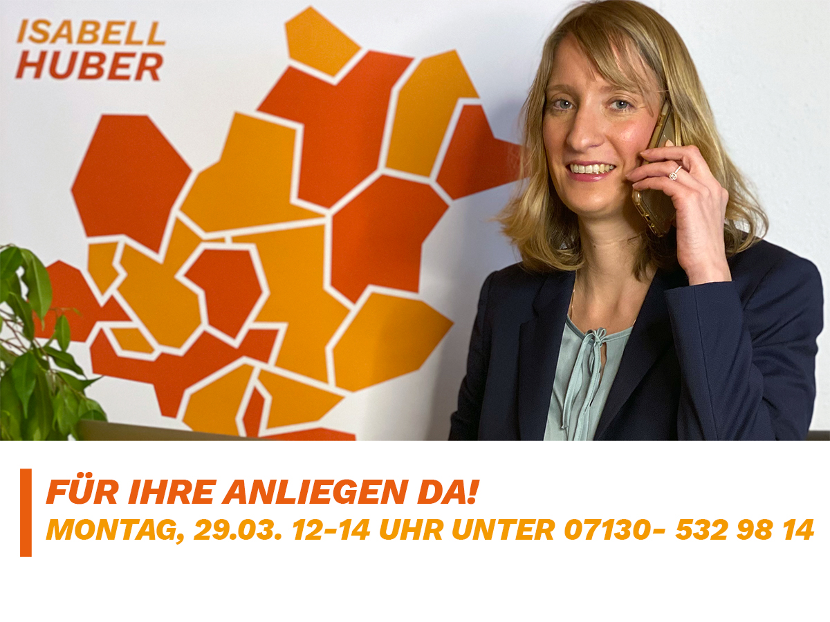 Telefonsprechstunde Ihrer Landtagsabgeordnete Isabell Huber am 29.03.2021: „Der direkte Kontakt mit Ihnen ist mir auch weiterhin wichtig. Deshalb bleibt meine Telefonsprechstunde bestehen. An jedem letzten Montag des Monats erreichen Sie mich von 12 bis 14 Uhr persönlich unter 07130 - 532 98 14. Zudem sind meine Mitarbeiterinnen und ich auch außerhalb der Telefonsprechstunden für Ihre […]